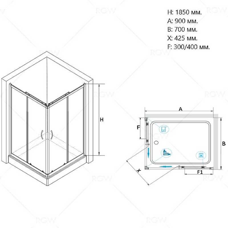 Душевой уголок RGW PA-146 90*700 стекло прозрачное, профиль хром 020814679-11