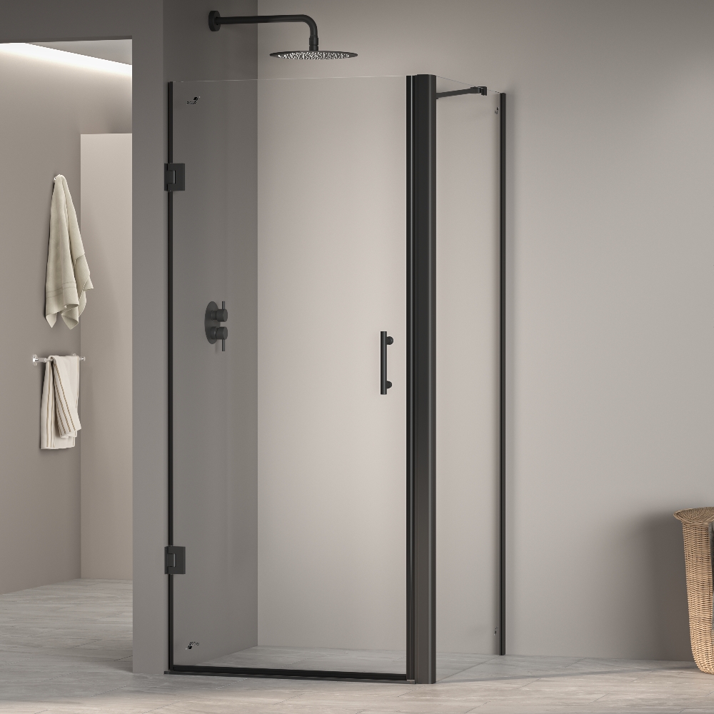 Цвет профиля черный придает душевому уголку элегантный и современный вид. Надежные водонепроницаемые стальные петли гарантируют, что дверь уголка будет функционировать плавно и бесшумно в течение долгого времени.