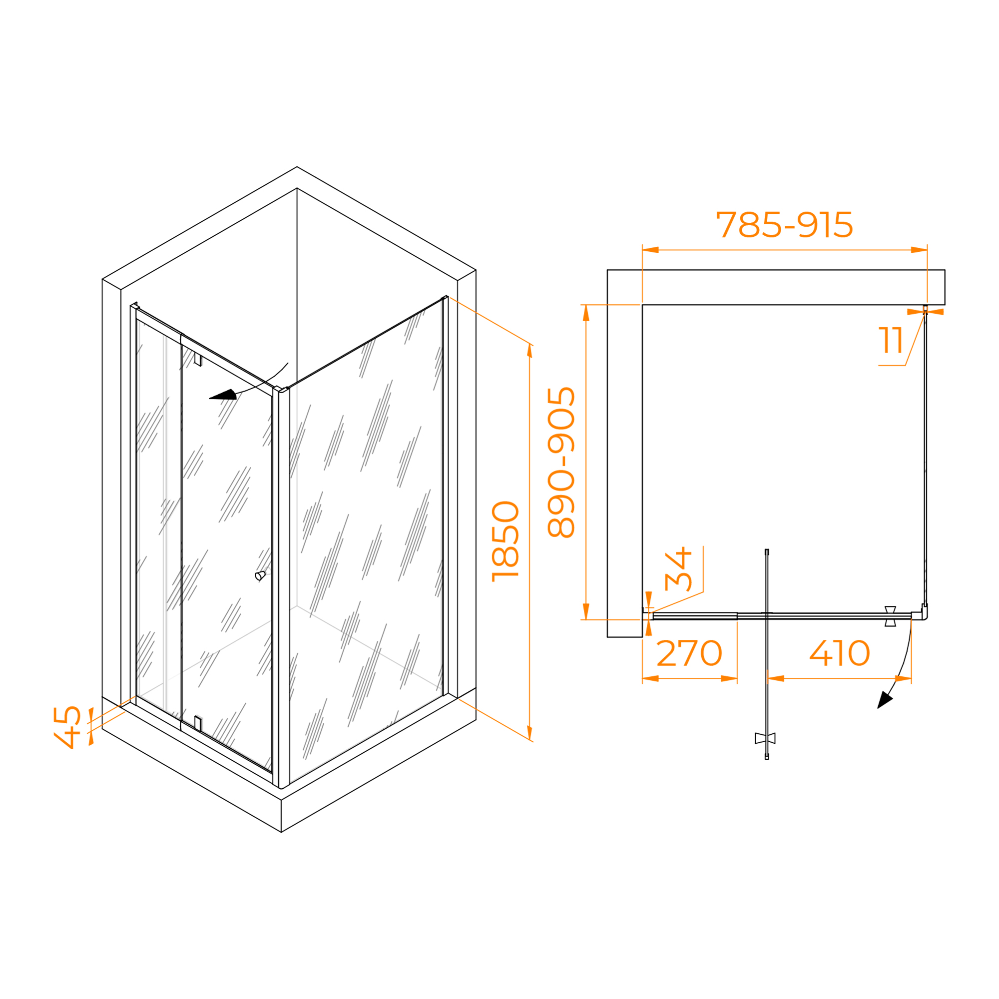 Конструкция дверей душевого уголка распашная, что облегчает доступ и создает дополнительное пространство в ванной комнате. Стекло прозрачное и покрыто антикапельной технологией Easy Clean, что делает его легким в уходе и обеспечивает чистоту и прозрачность стекла.