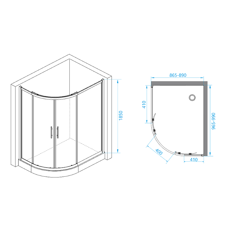 Размеры с диапазоном регулировок (ШхД): 965-990 х 865-890 мм.