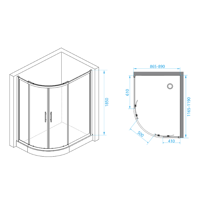 Размеры с диапазоном регулировок (ШхД): 1165-1190 х 865-890 мм.