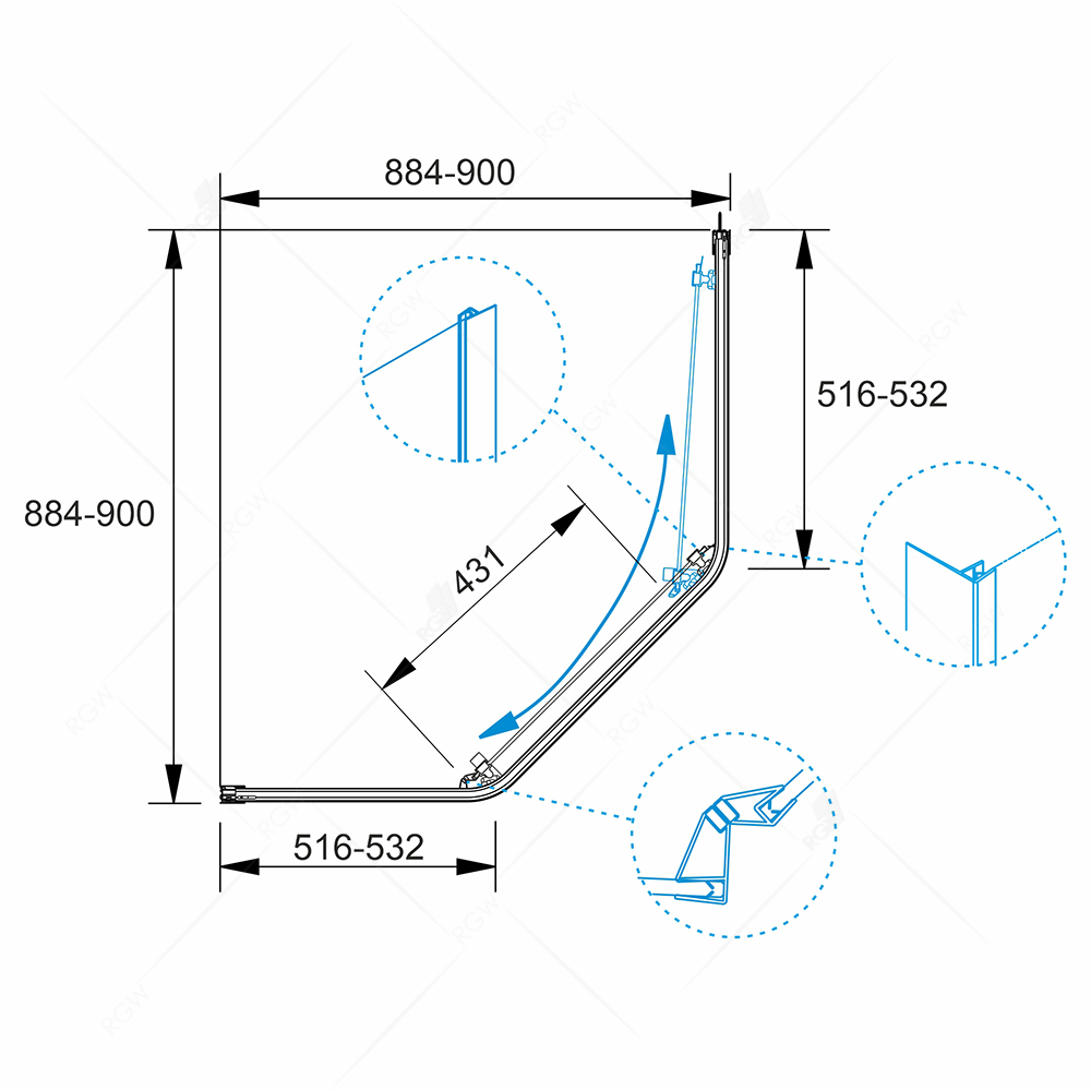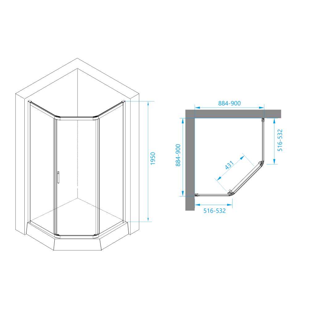 Размеры (ШхДхВ): 900x900х1950 см.