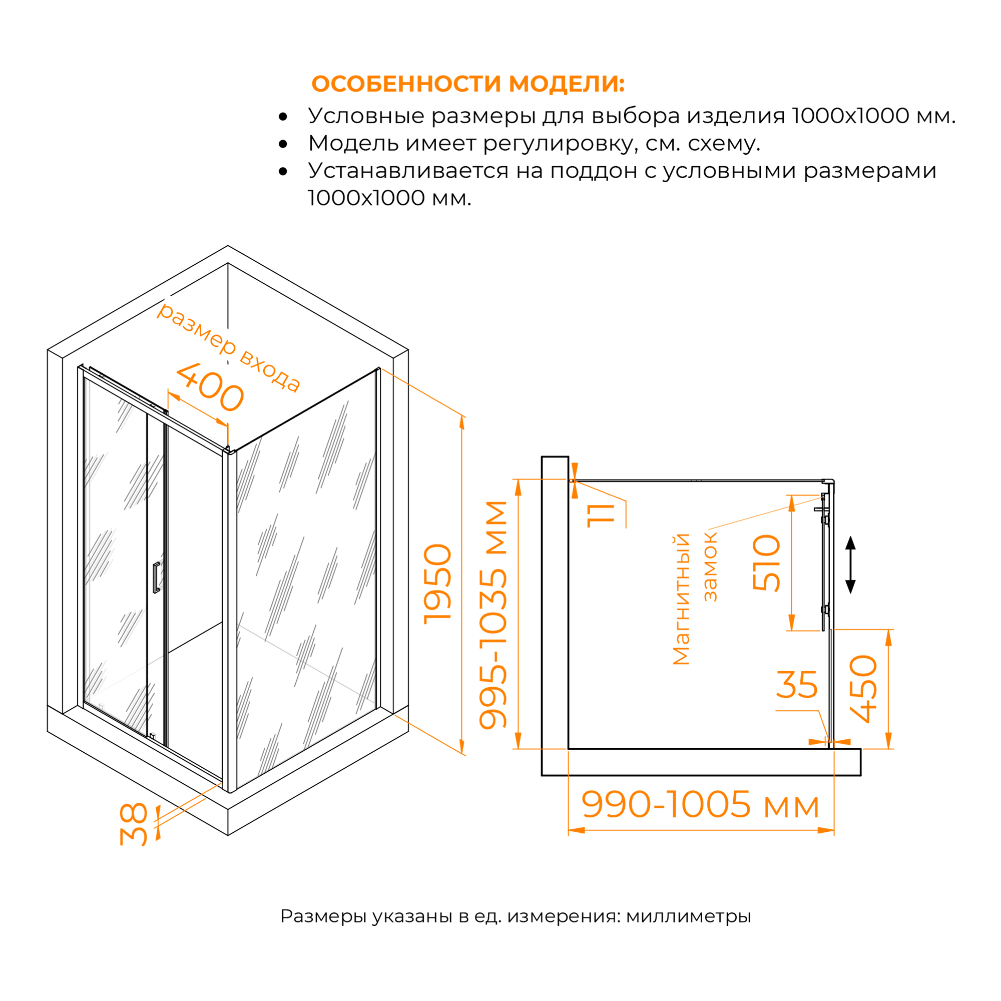 Душевой уголок RGW Passage 100x100 стекло прозрачное, профиль черный (410874100-14)