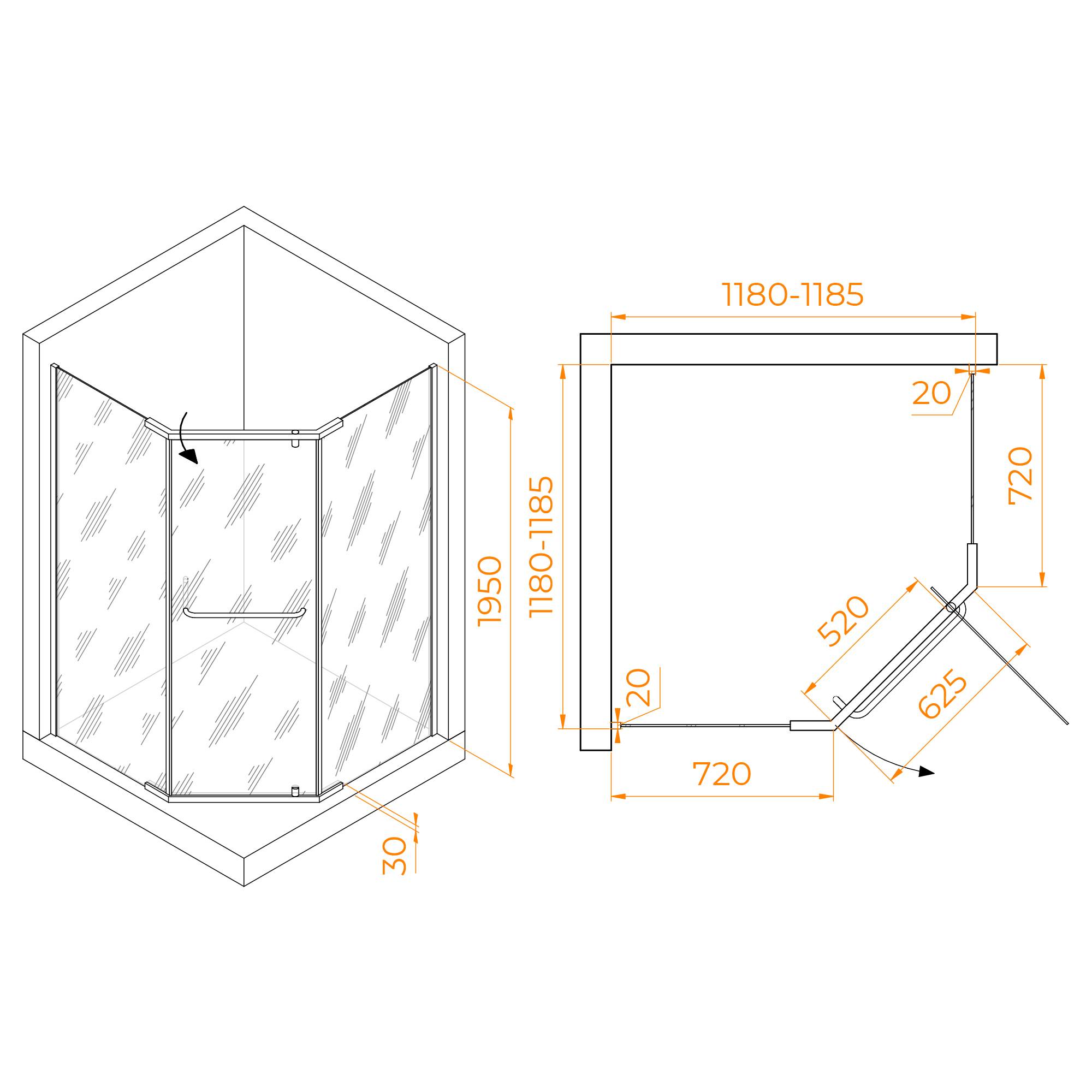 Душевой уголок RGW Passage 120x120 стекло прозрачное, профиль черный (35088122-14)