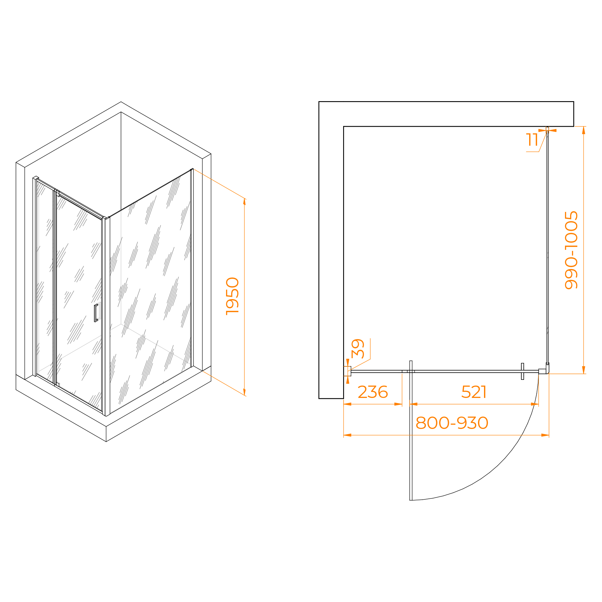 Душевой уголок RGW Passage 80x100 стекло прозрачное, профиль черный (350807880-14)