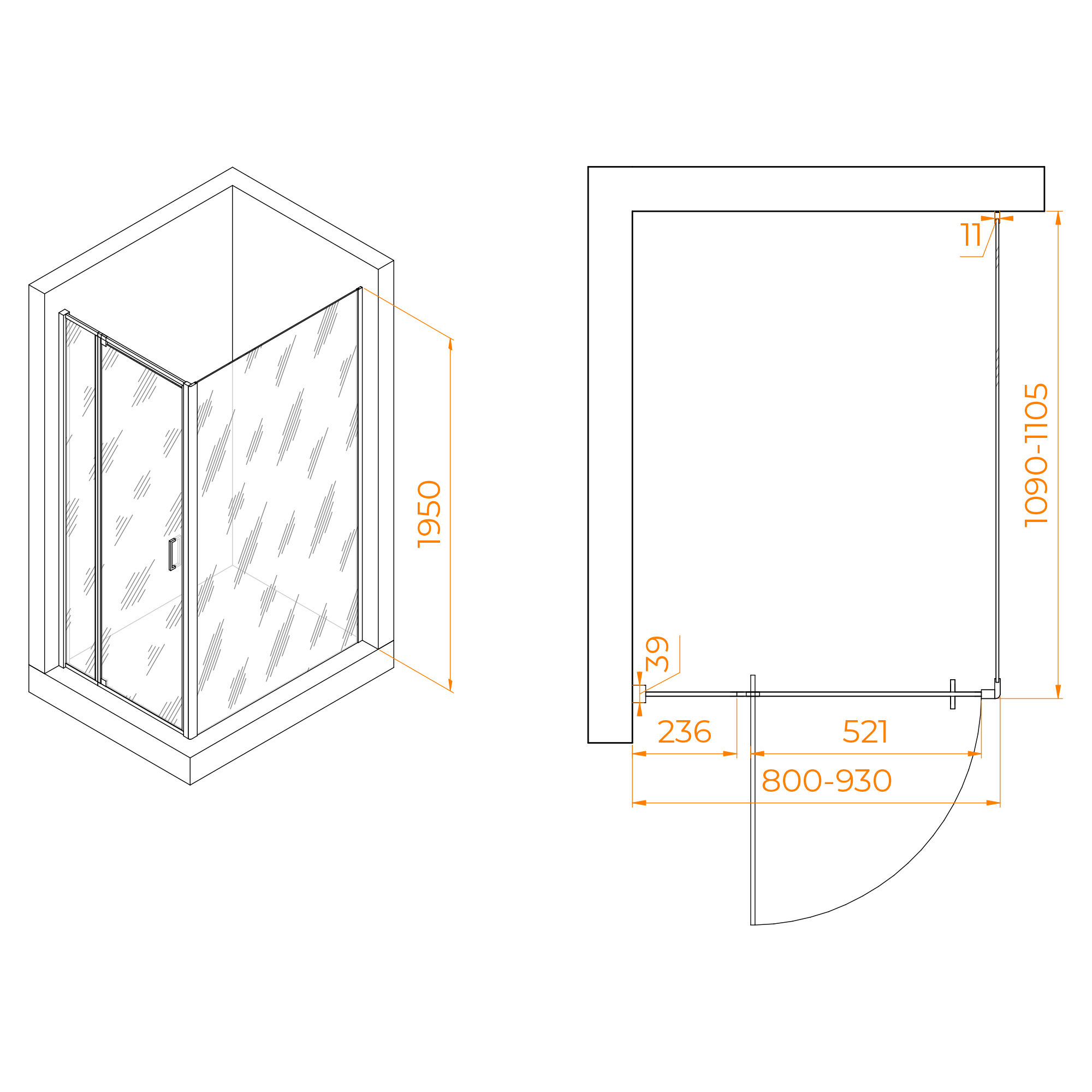 Душевой уголок RGW Passage 80x110 стекло прозрачное, профиль черный (350807881-14)