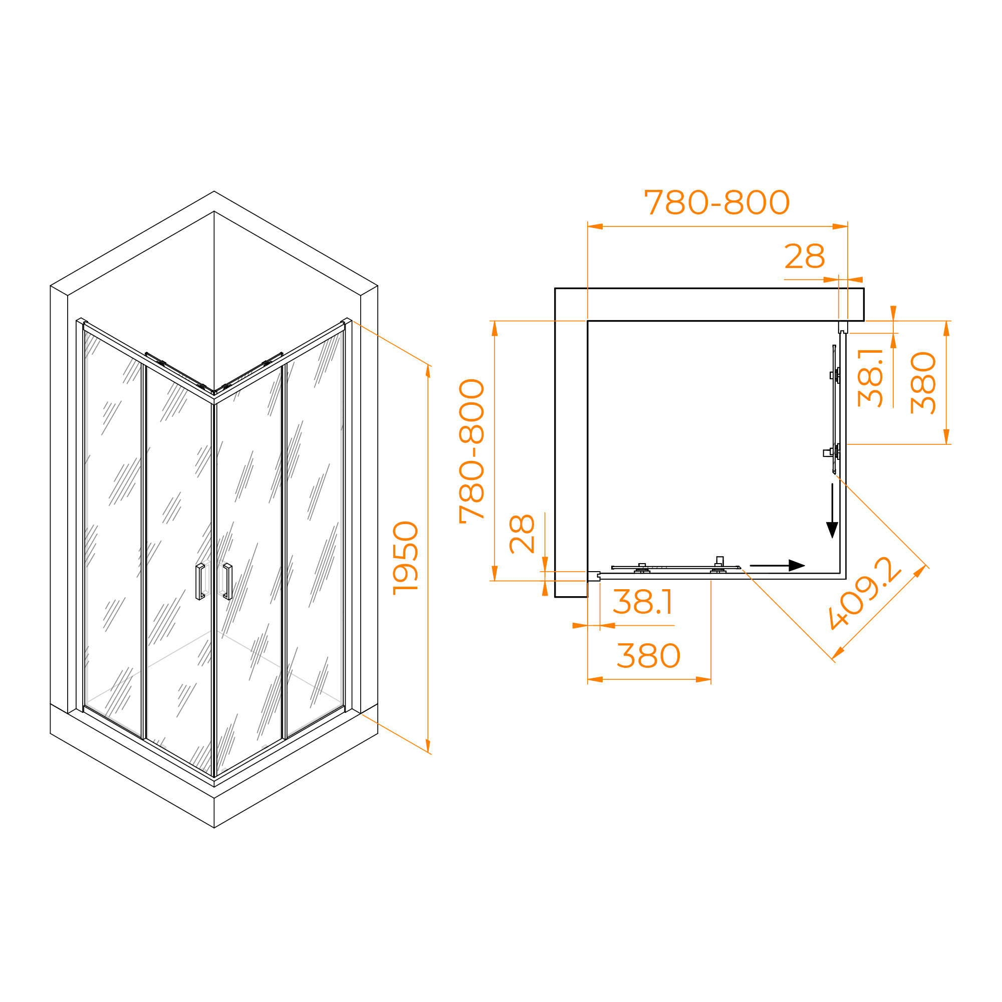 Душевой уголок RGW Passage 80x80 стекло прозрачное, профиль хром (03083988-11)