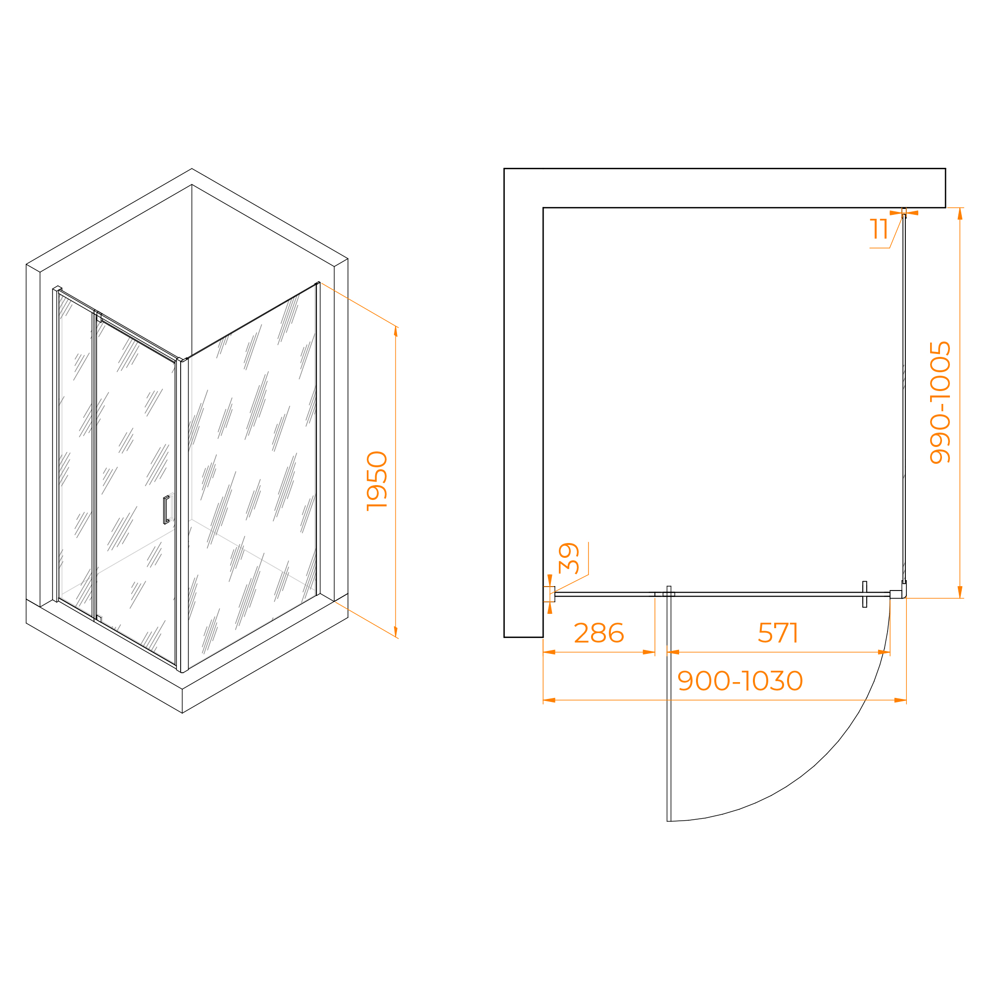 Душевой уголок RGW Passage 90x100 стекло прозрачное, профиль черный (350807890-14)