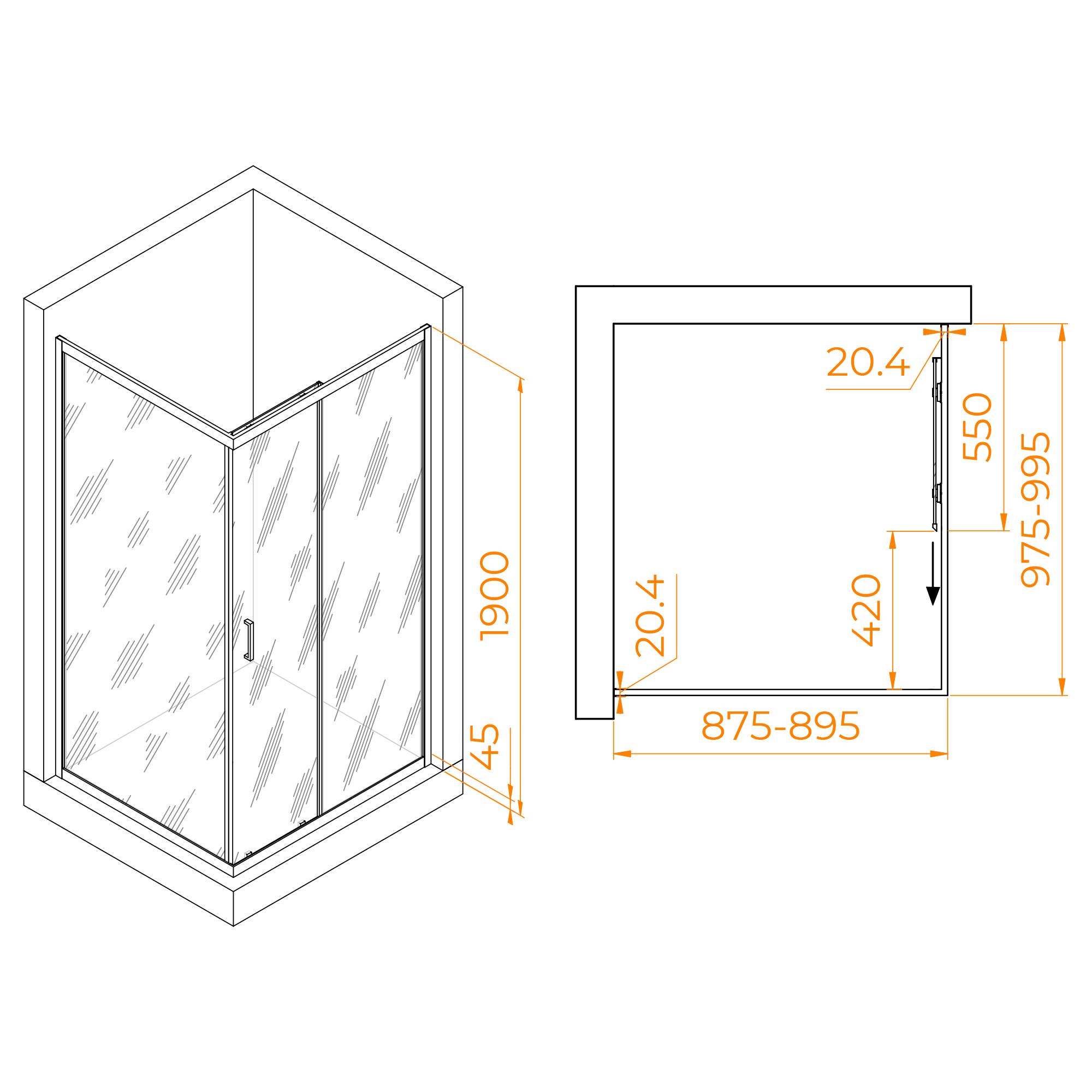Душевой уголок RGW Passage 90x100 стекло прозрачное, профиль хром (410824590-11)