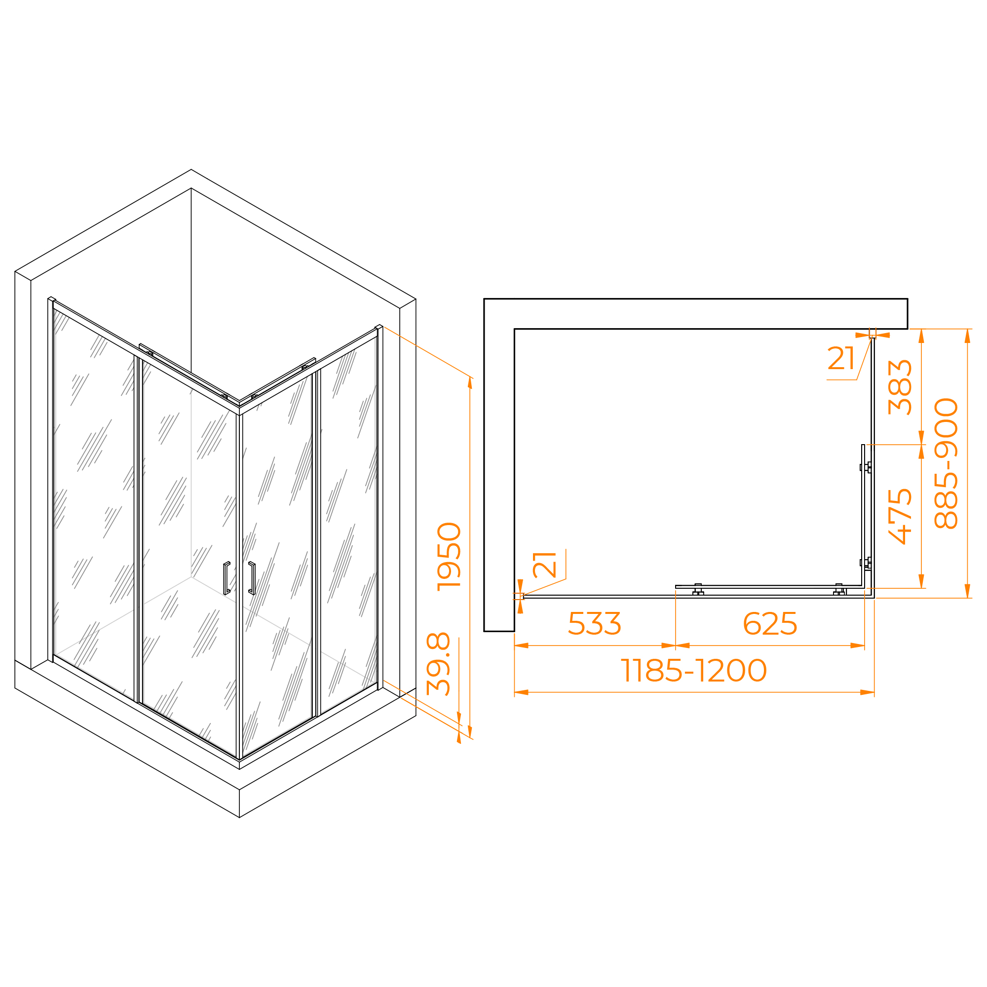 Душевой уголок RGW Passage 90x120 стекло матовое, профиль хром (3508104092-21)