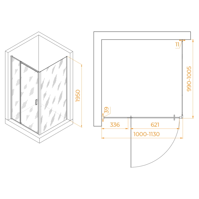 Душевой уголок RGW Passage PA-078 (PA-008 + Z-050-2) 100x100x195 стекло прозрачное, профиль хром (350807800-11)
