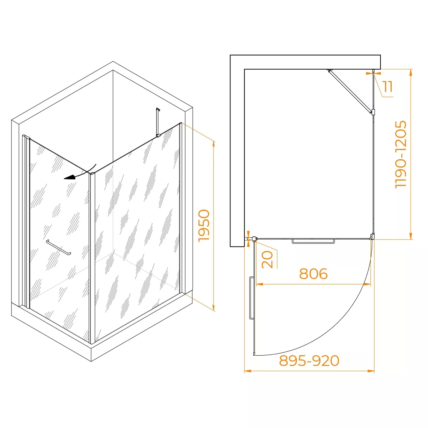 Душевой уголок RGW Passage PA-148B (PA-103B + Z-050-2B + O-104B) 90x120x195 стекло прозрачное, профиль черный (020814892-014)