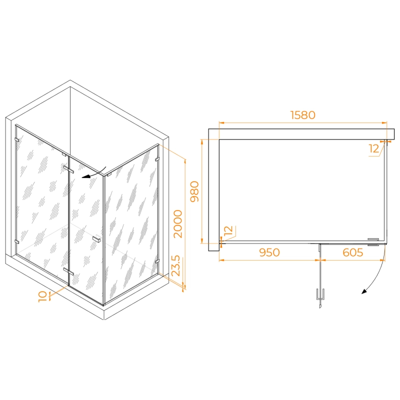 Душевой уголок RGW StilvollSV-040-Gr 160x100x200 стекло прозрачное, профиль серый (353204060-110)