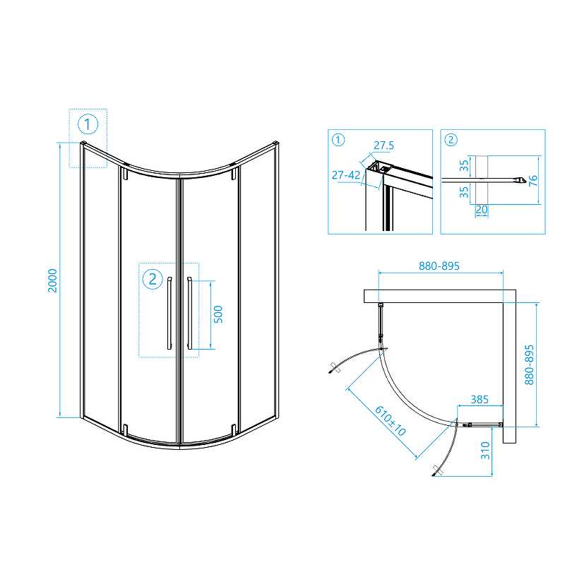 Размеры с диапазоном регулировок (ШхД): 880-895 х 880-895 мм.