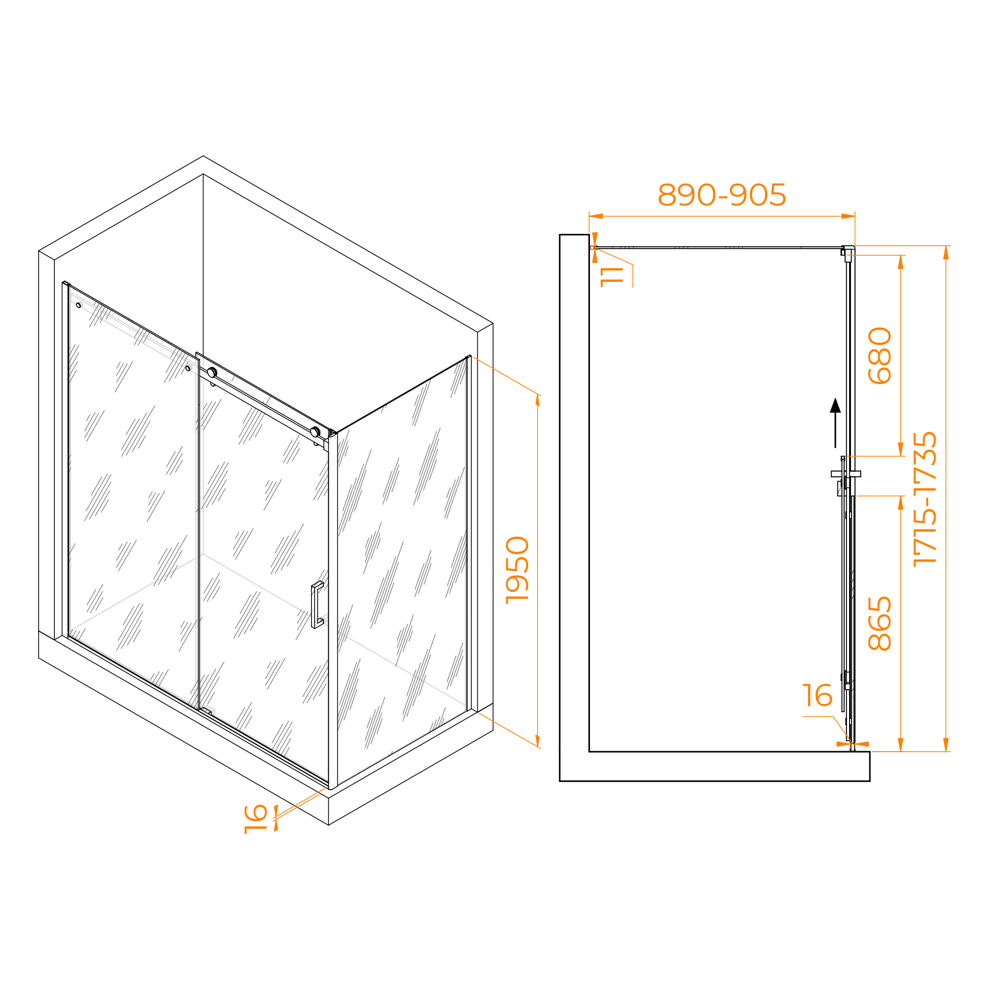 Стекло душевого уголка имеет специальное покрытие анти капля Easy Clean. Это позволяет легко и быстро очищать стекло от водных капель и других загрязнений. Регулируемый профиль позволяет легко подогнать душевой уголок к размеру вашей ванной комнаты.