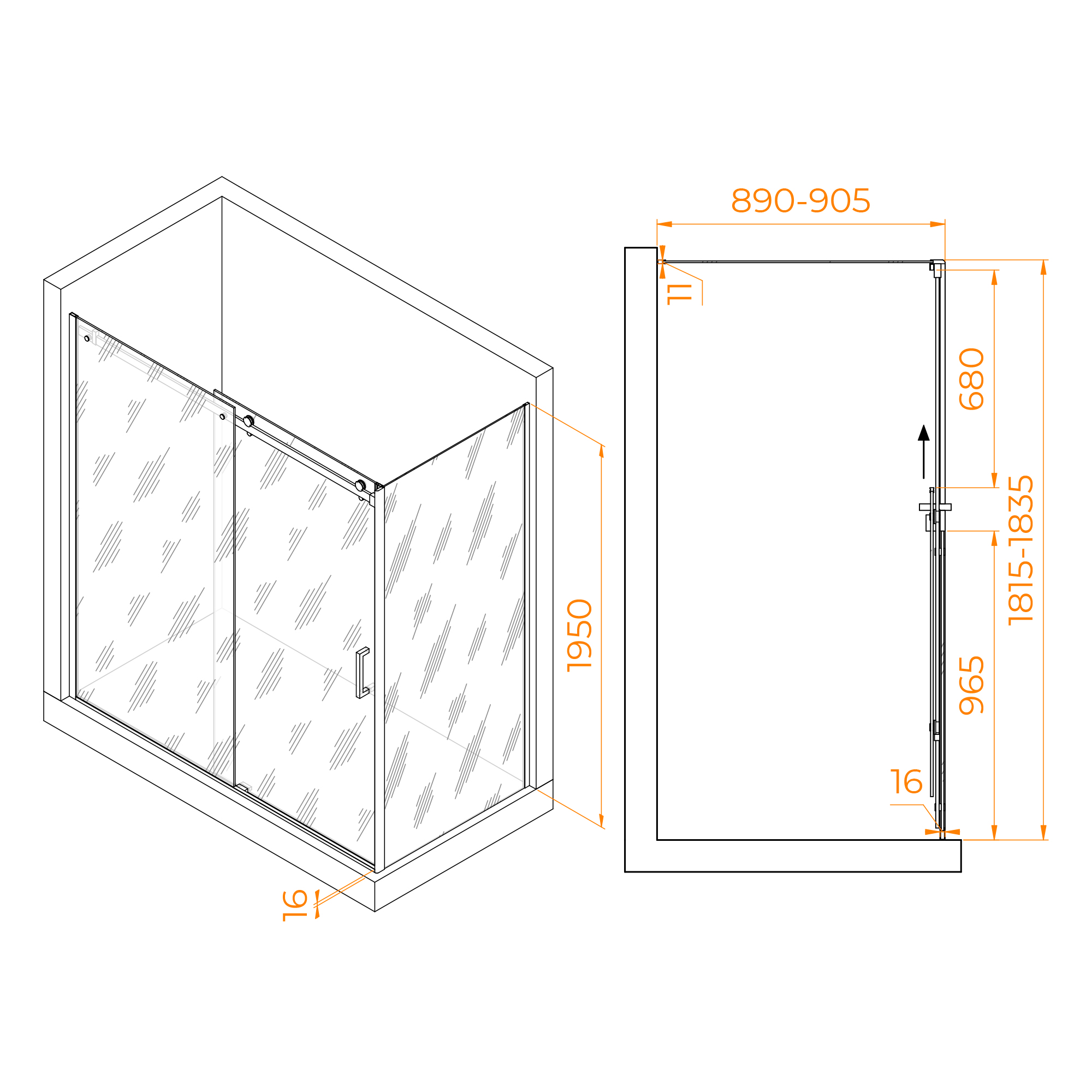 Цвет профиля хром, что придает душевому уголку современный и стильный вид. Высота душевого угла составляет 1950 мм, что позволяет использовать его для любого размера человека.