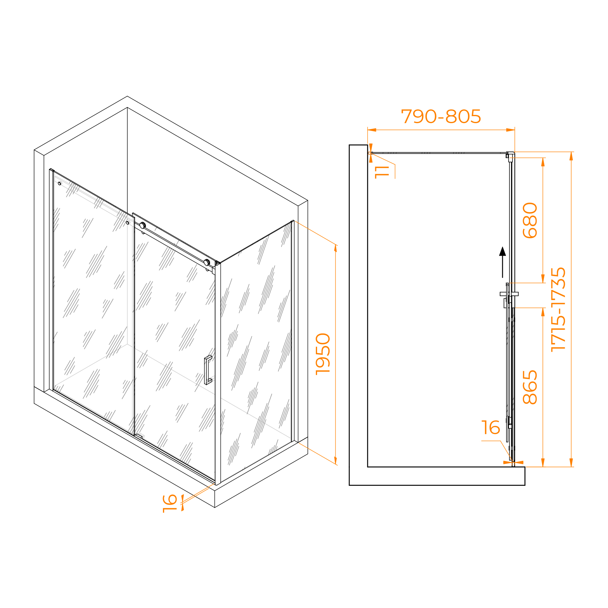 Душевой уголок RGW Tornado 170x80 стекло прозрачное, профиль черный (02074478-14)