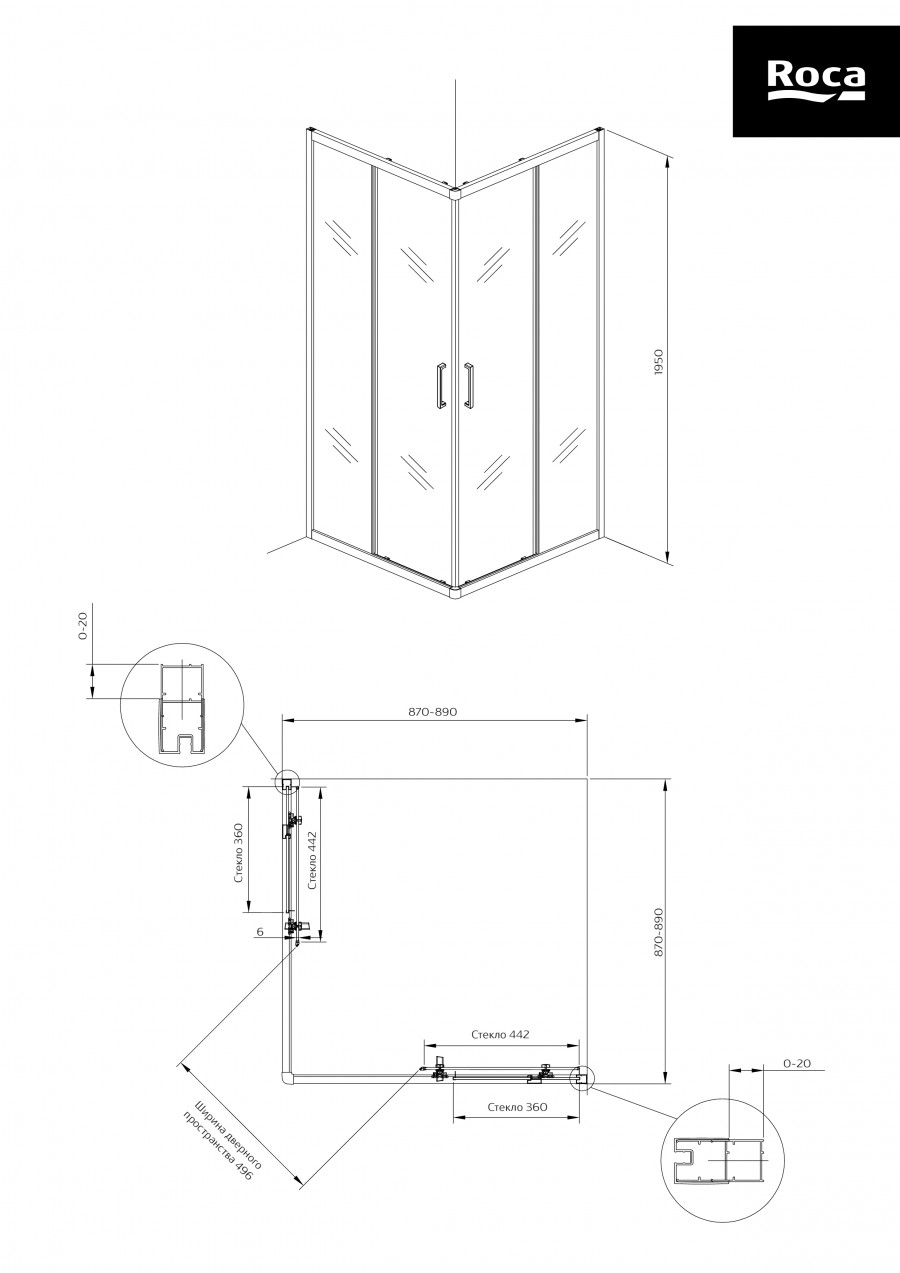 Душевой уголок Roca Leon 90x90x195 стекло прозрачное, профиль хром (Z.RU93.0.766.5)