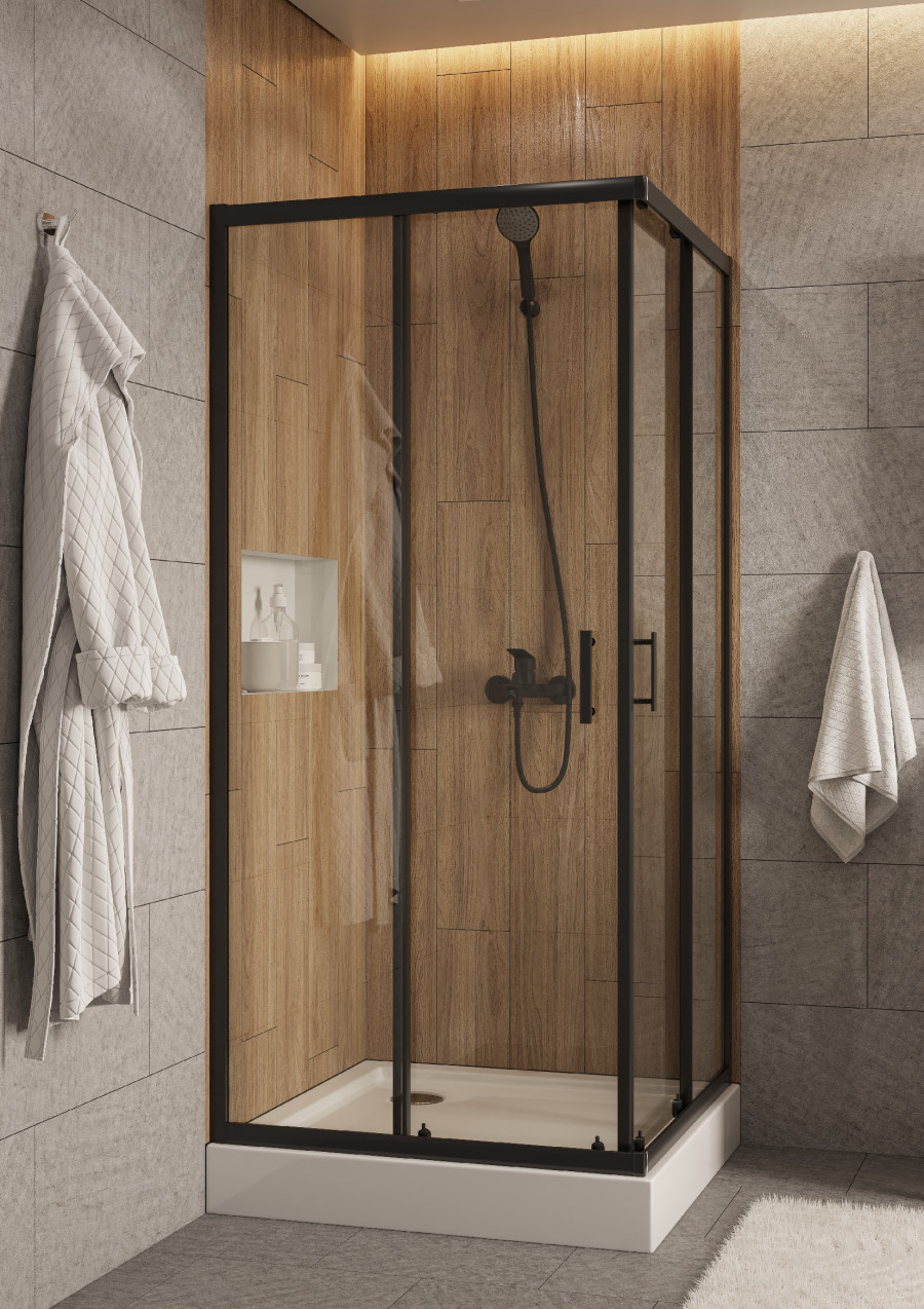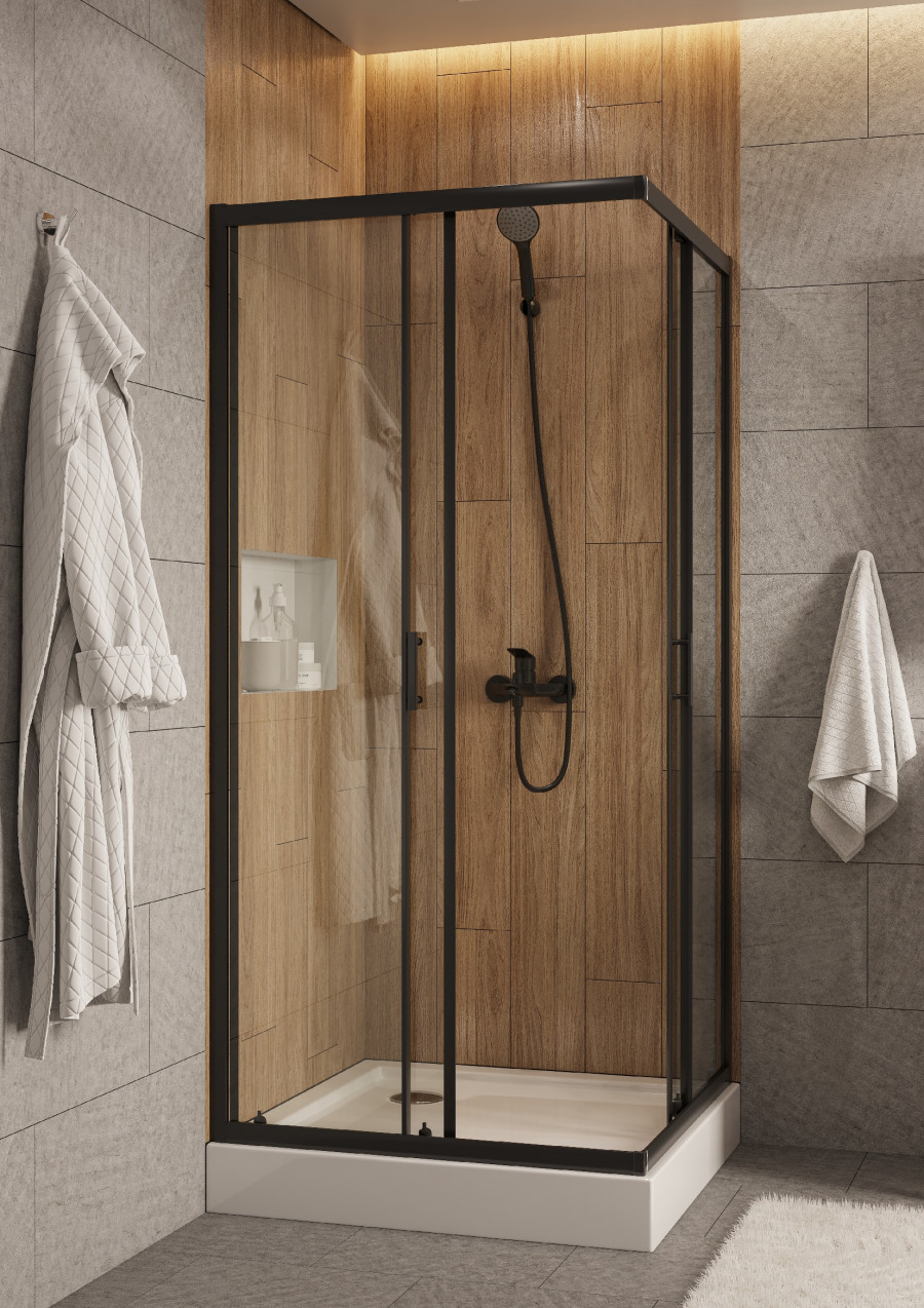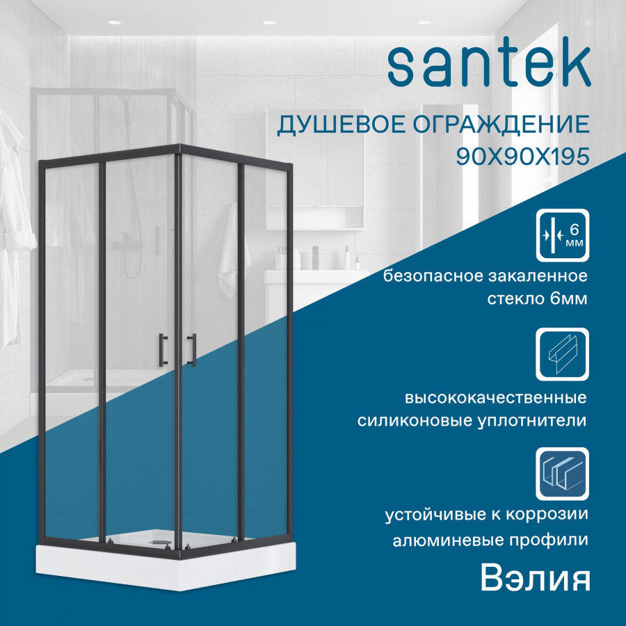 Душевой уголок Santek Вэлия 90x90x195 стекло (прозрачное, профиль черный (1WH501789)