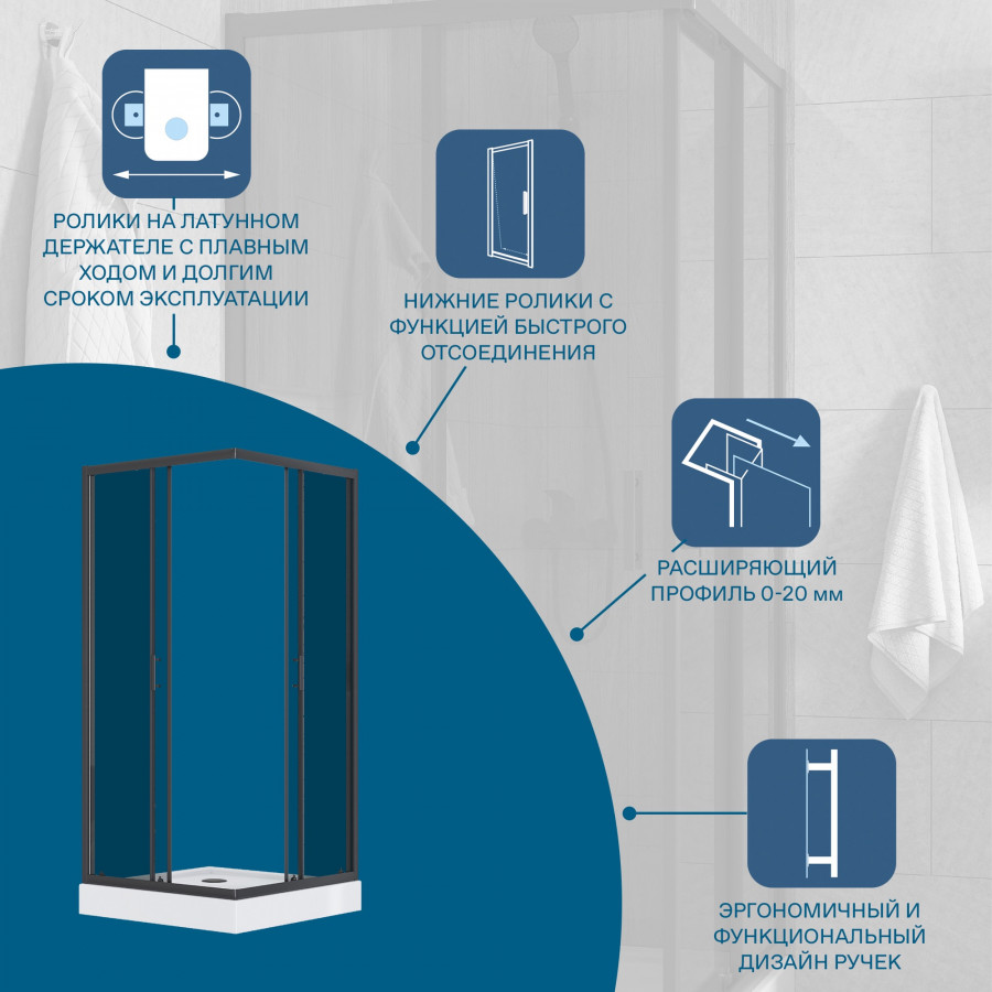 Душевое ограждение Вэлия - это высококачественное решение для Вашего душевого пространства по доступной цене! Безопасное закаленное стекло толщиной 6 мм придает дополнительную монтажную устойчивость конструкции. Алюминиевые профили не подвергаются коррозии благодаря образованию тончайшей оксидной пленки на поверхности, предохраняющей профили ограждения от дальнейших окислительных реакций с водой и воздухом. Качественные ролики на латунных держателях способны выдерживать тяжелые двери на протяжении всего периода службы изделия и также обладают высокой сопротивляемостью коррозии. Долговечные силиконовые уплотнители сохраняют эксплуатационные характеристики многие годы, не стираются и не высыхают – не становятся хрупкими. Дополнительно расширить пространство и нивелировать неровности стен позволяет компенсирующий профиль, создающий пространство для расширения до 20 мм. Быстросъемные нижние ролики делают уход за душевым ограждением более быстрым и простым, позволяя промывать нижнюю часть ограждения за счет дополнительного пространства, возникающего при отсоединении.
