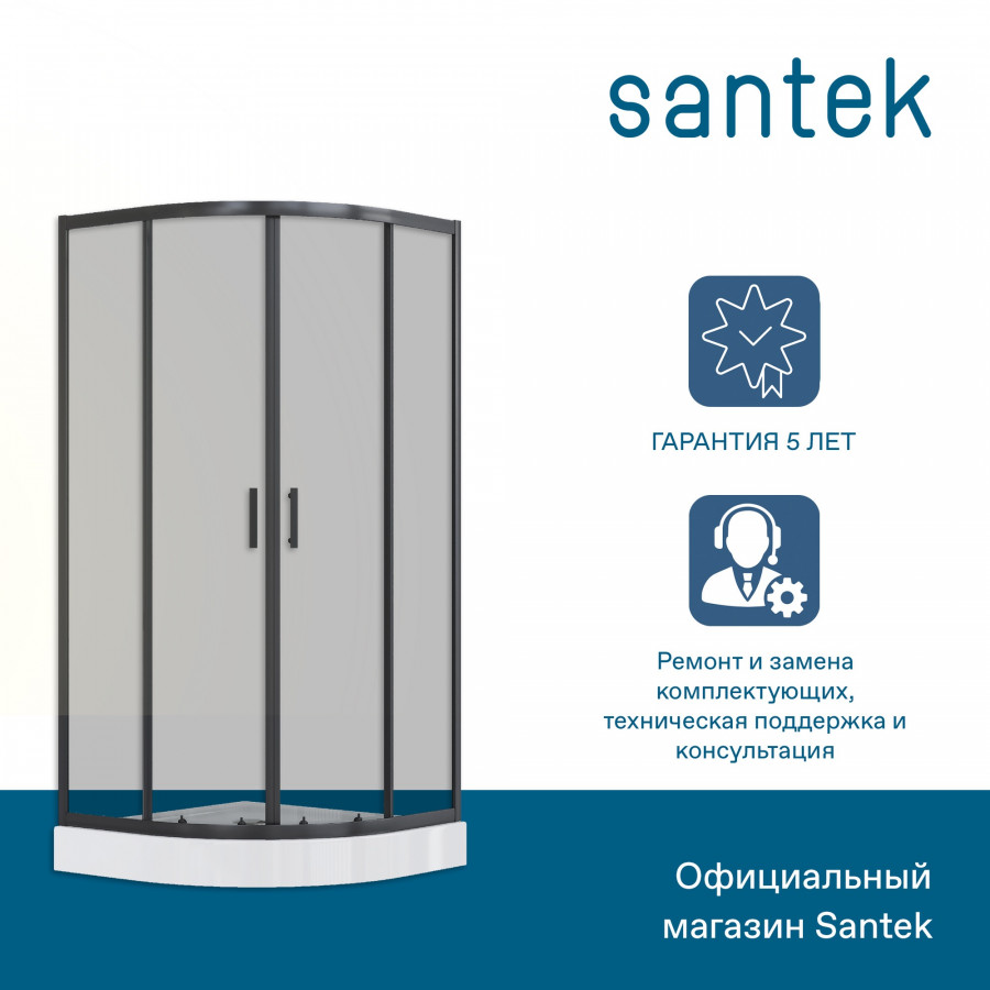 Душевой уголок Santek Вэлия 90x90x195 стекло тонированное, профиль черный (1WH501799)