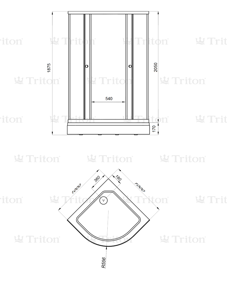 Душевой уголок Triton 100*100 А стекло полосы, профиль белый (DK164_2)