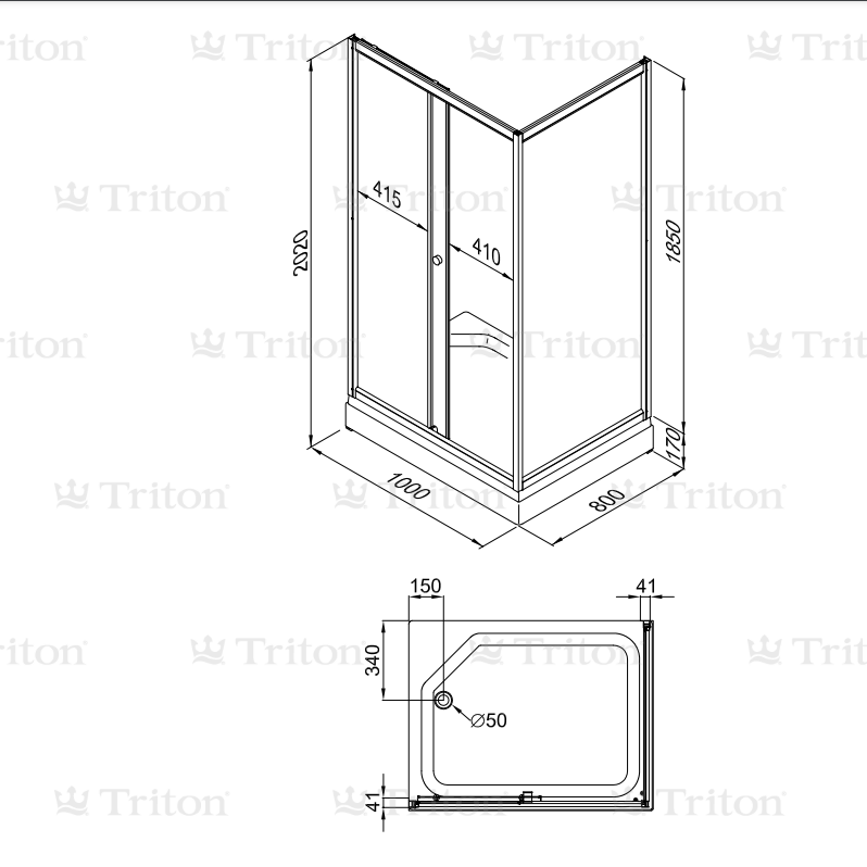 Душевой уголок Triton Фьюжн 1000*800*2020 стекло прозрачное с рисунком, профиль белый (DK246)
