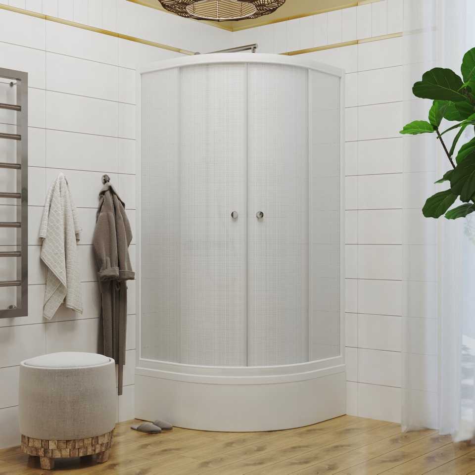 Упрощённая конструкция, состоящая из акрилового поддона средней глубины и переднего ограждения, устанавливается вплотную к стене, что позволяет сэкономить дополнительные сантиметры при планировке. Шторки душевого уголка имеют роликовую систему раздвижения и укомплектованы резиновыми уплотнителями для лучшей герметизации.