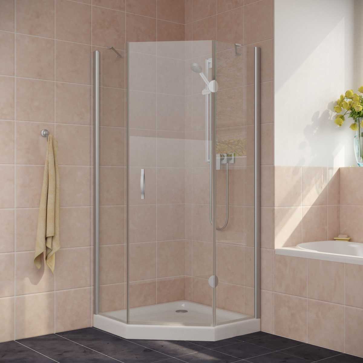 Душевой уголок Vegas Glass (Вегас Глас) AFA-Pen 100x100 см. Ограждение угловое пятиугольное с распашной дверью.