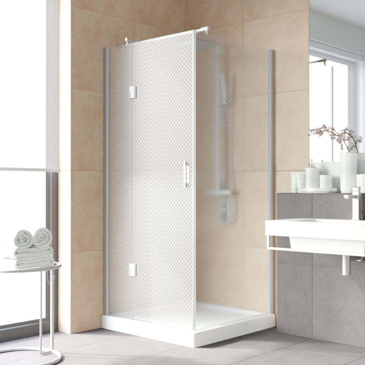 Душевой уголок Vegas Glass (Вегас Глас) AFP-Fis 110x110 см. Ограждение угловое квадратное, дверь распашная.