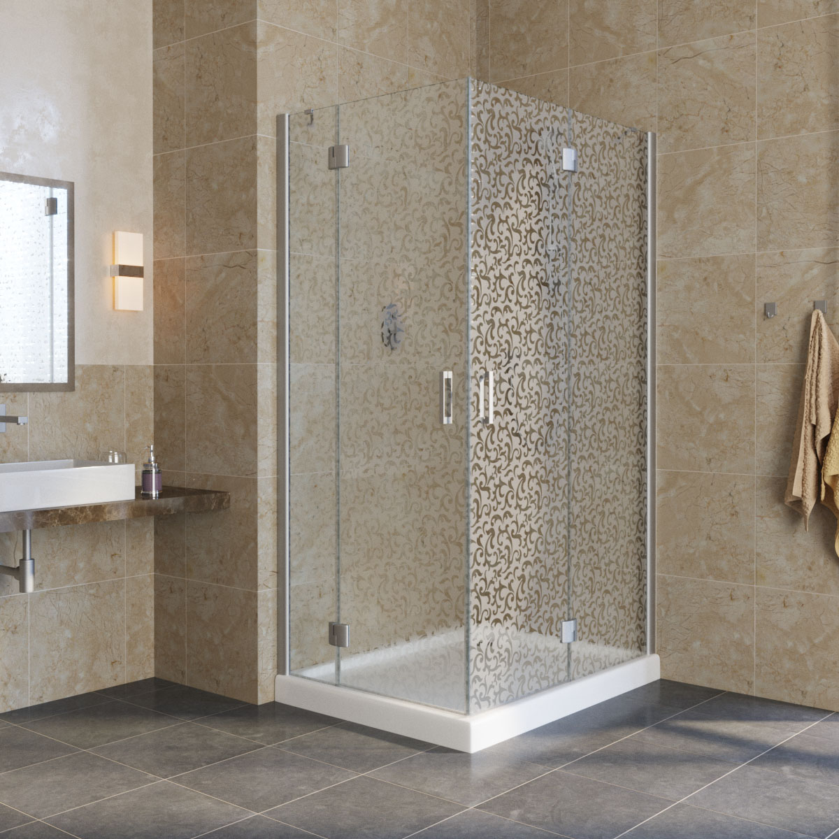 Поддон в комплект не входит. Возможна установка как на поддон, так и непосредственно на пол со встроенным в пол душевым каналом.