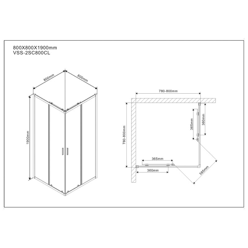 Душевой уголок Vincea Scala VSS-2SC 800х800х1900 стекло прозрачное, профиль хром (VSS-2SC800CL)