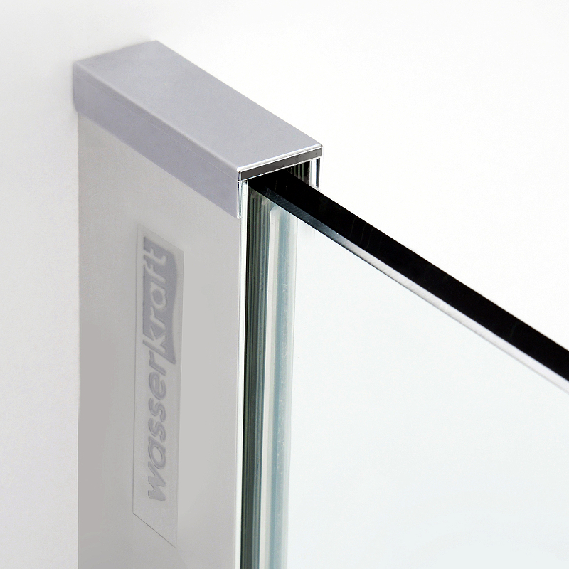 Покрытие WasserSchutz защищает поверхность стекла от разводов воды и известковых отложений. Капли воды на поверхности невидимого защитного слоя не задерживаются, а стекают, не оставляя подтеков. Это гарантирует легкий уход за изделием. Сторона стекла, где нанесено покрытие WasserSchutz, обозначается специальной наклейкой. Именно этой стороной внутрь необходимо устанавливать стекло при монтаже.