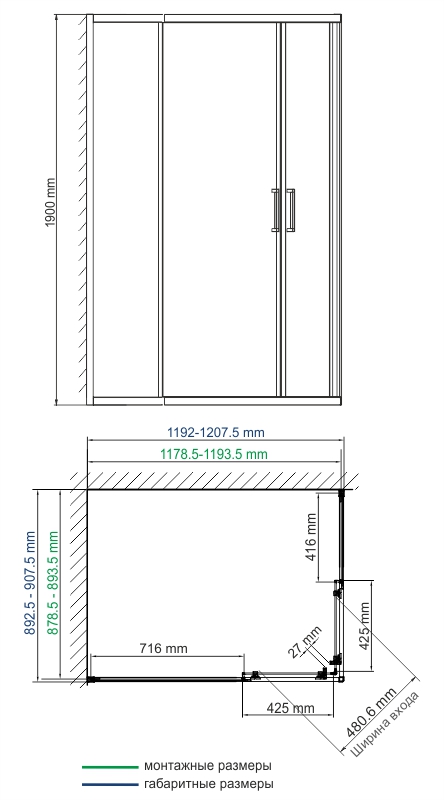 Душевой уголок Wasserkraft Lippe 45S07, размер 1200х900х1900 мм, прямоугольный, с раздвижными дверьми.