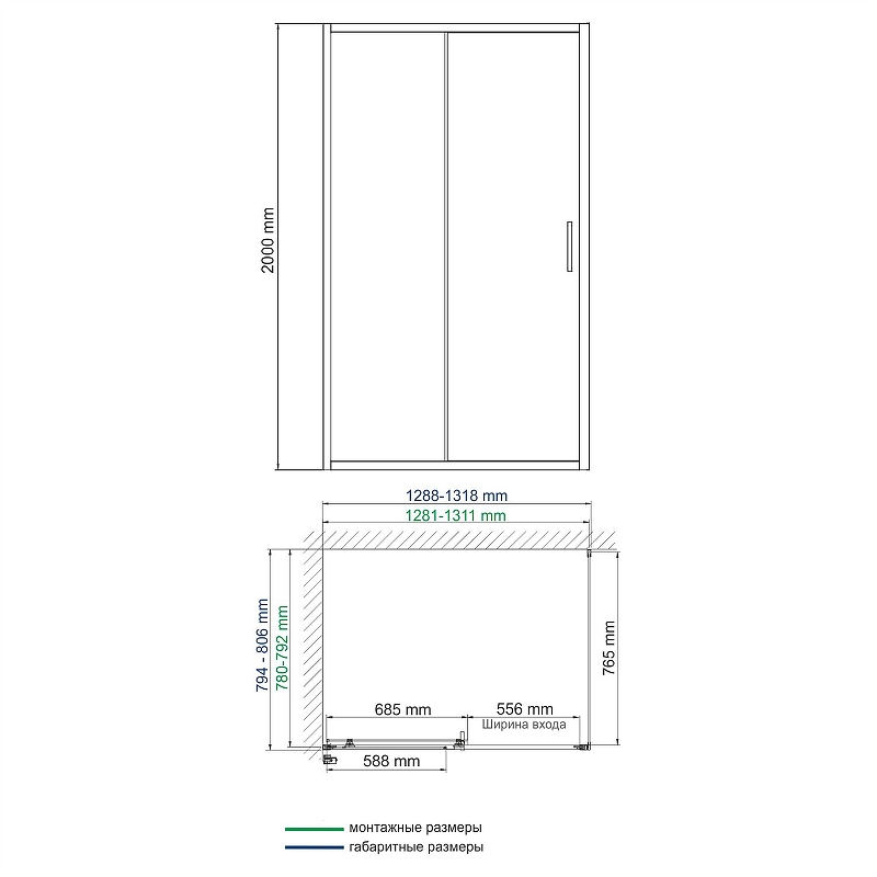 4) Регулирующий профиль до 15 мм - Возможность регулировки бокового профиля позволяет компенсировать неровности стен и настроить размер душевой двери под индивидуальный интерьер.