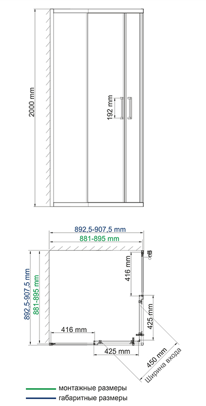 Main 41S03 Matt glass Душевой уголок 90х90 см, квадрат, с раздвижными дверьми, матовое стекло.