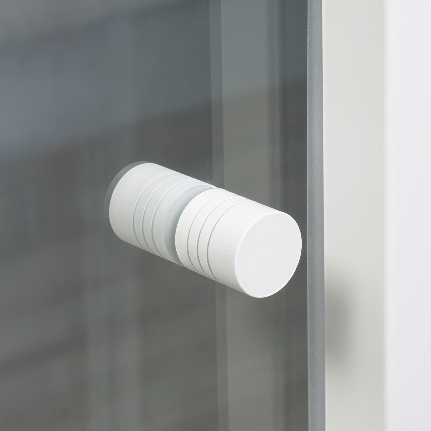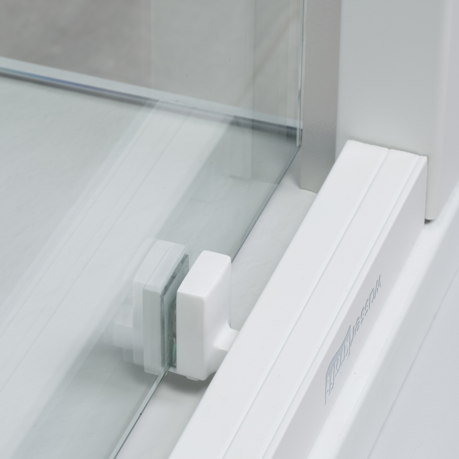 Механизм легкой чистки - Система отстегивания душевых дверей, дает возможность легкого ухода за всеми деталями изделия. Достаточно нажать кнопку на нижних роликах с внешней стороны душевого уголка и отодвинуть дверь от профиля во внутрь.