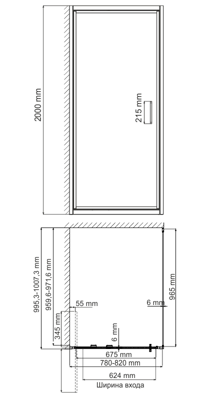 Душевой уголок Wasserkraft Salm 27I29, размер 800*1000*2000 мм, прямоугольный, поворотный механизм из латуни для открывания двери.