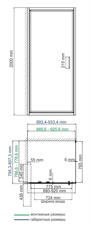 Душевой уголок Wasserkraft Salm 27I04, размер 900х2000 мм, прямоугольный, поворотный механизм из латуни для открывания двери.