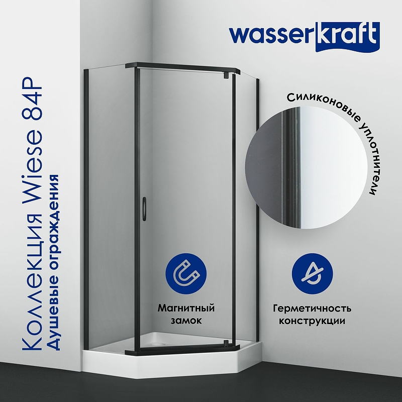 Душевой уголок WasserKRAFT Wiese 84P 90х200х90 стекло прозрачное, профиль черный (84P11)