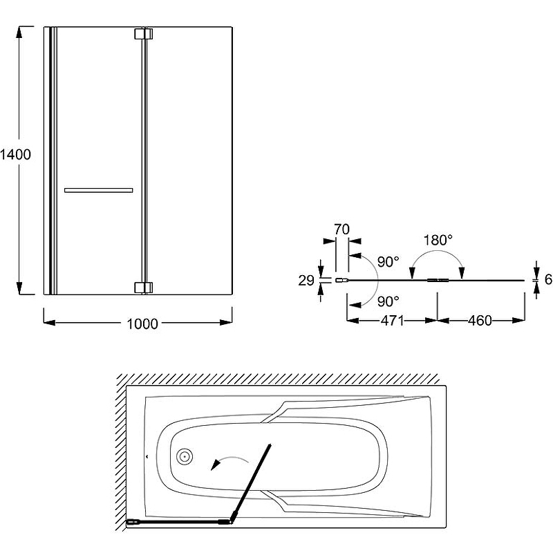 Душевые шторки для ванн Jacob Delafon Adequation 100x140 стекло прозрачное, профиль черный (E4931-BL)