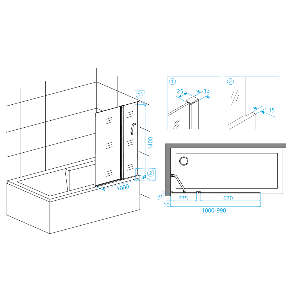 Душевые шторки для ванн RGW Screens 100x140 стекло прозрачное, профиль черный (03111110-14)