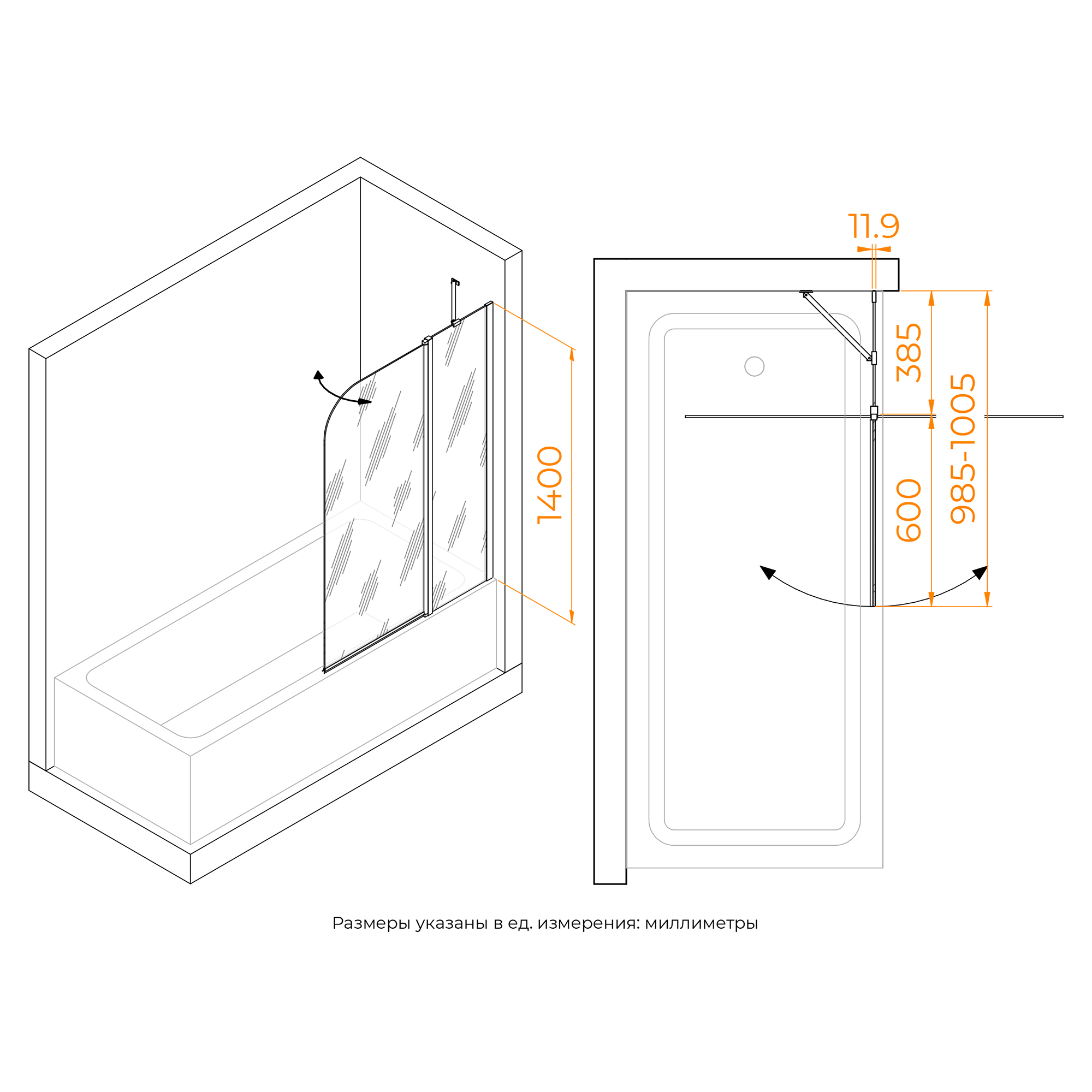 Душевые шторки для ванн RGW Screens 100x140 стекло прозрачное, профиль черный (351101110-14)