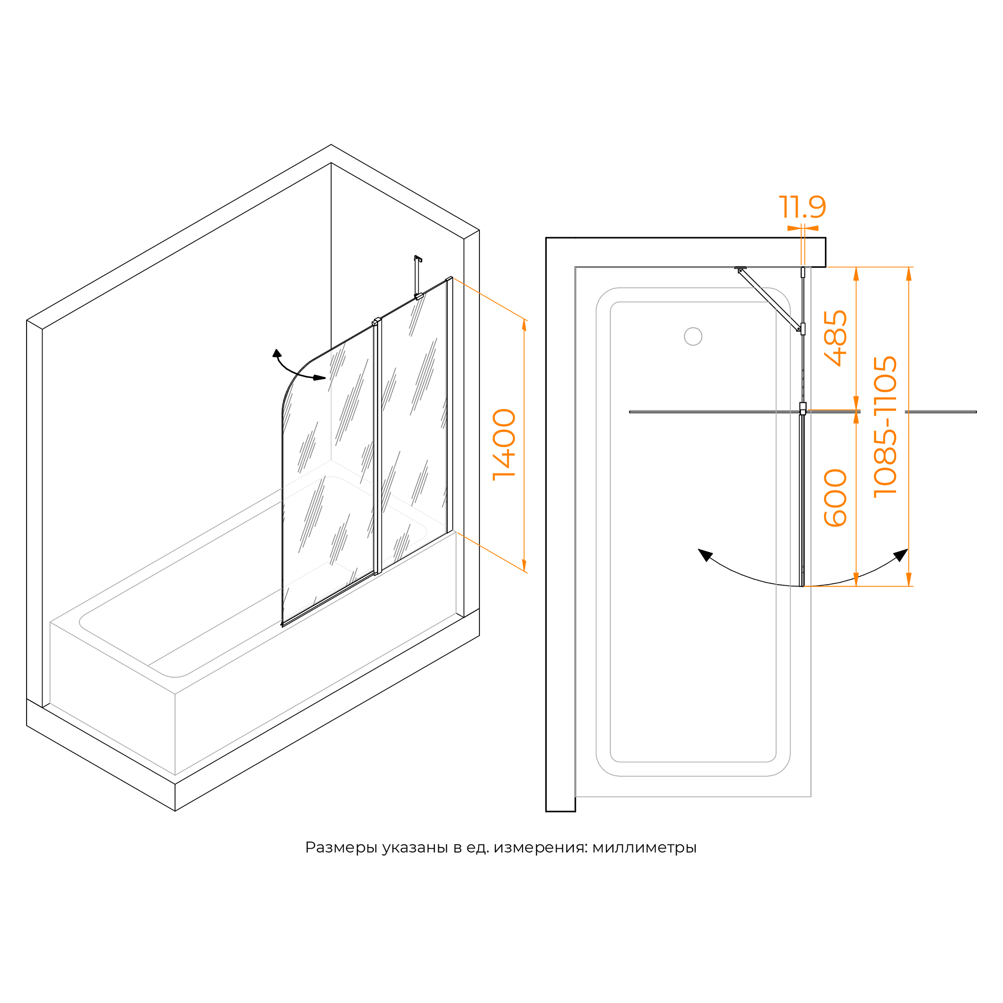 Душевые шторки для ванн RGW Screens 110x140 стекло прозрачное, профиль черный (351101111-14)