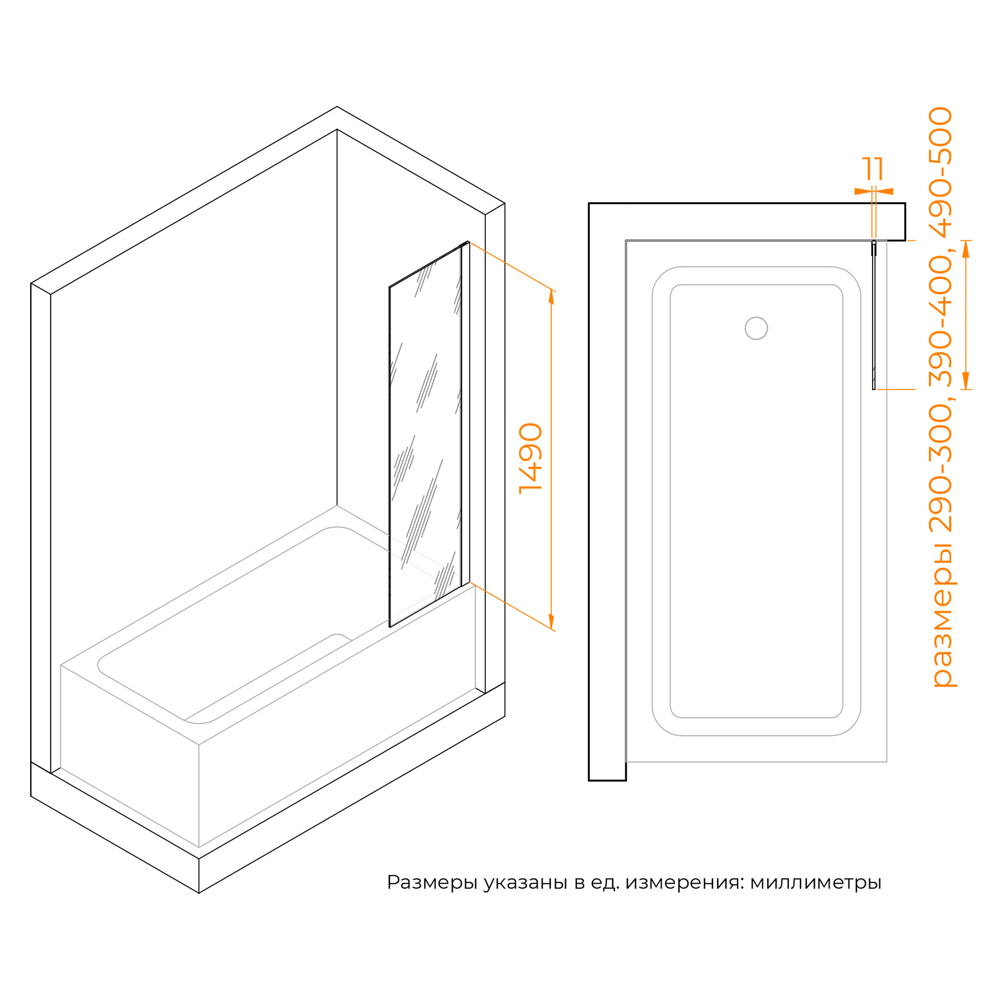 Душевые шторки для ванн RGW Screens 40x150 стекло прозрачное, профиль хром (351105640-11)