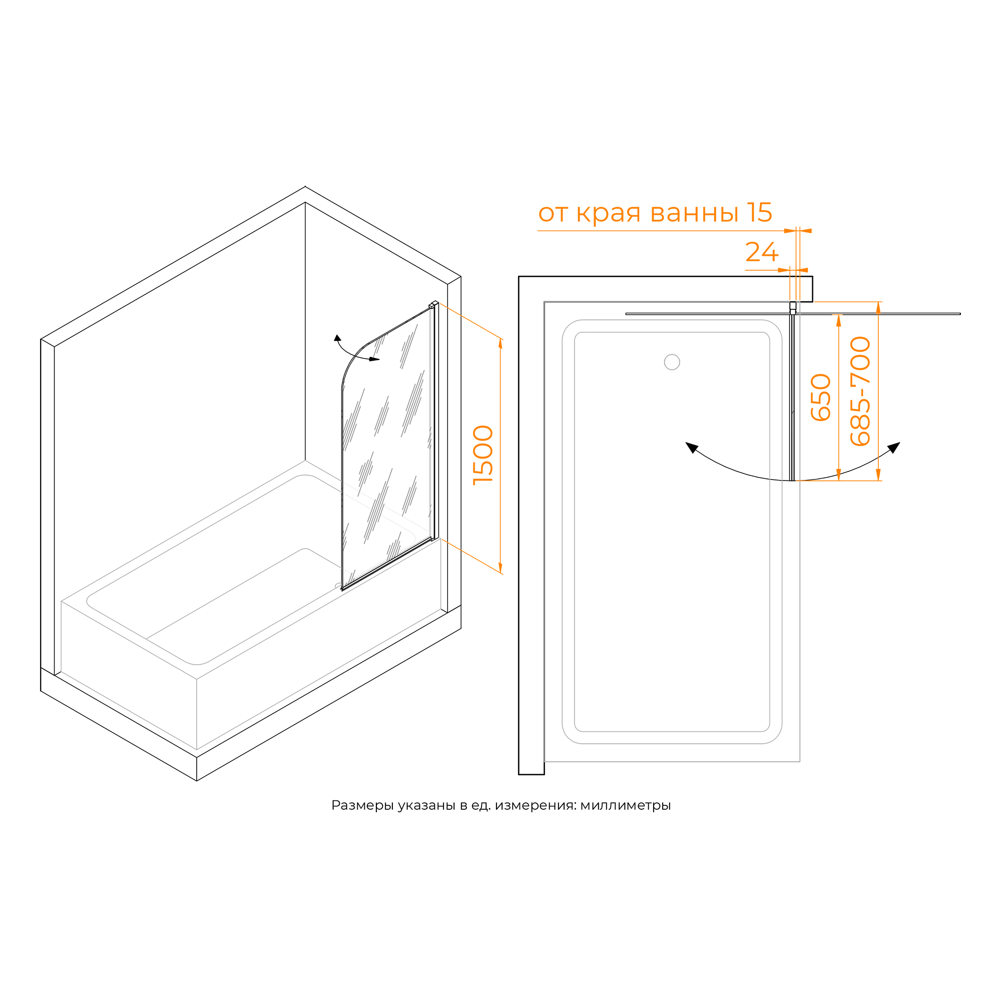 Душевые шторки для ванн RGW Screens 70x150 стекло прозрачное, профиль черный (35110907-14)