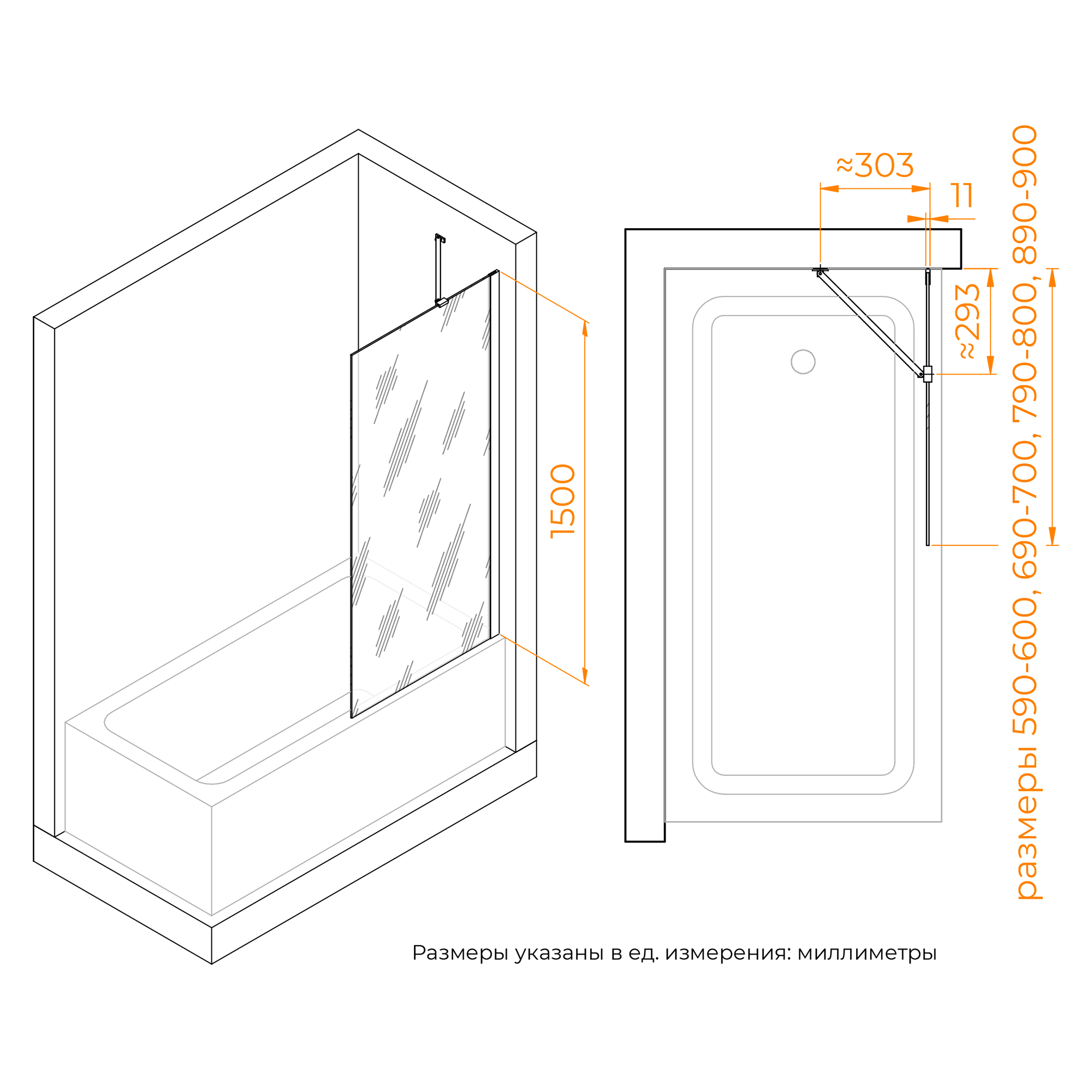 Душевые шторки для ванн RGW Screens 90x150 стекло прозрачное, профиль черный (35111509-14)