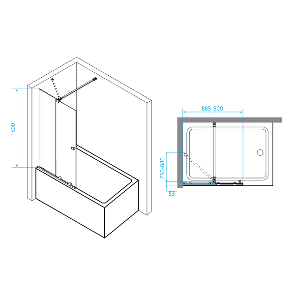 Душевые шторки для ванн RGW Screens 90x150 стекло прозрачное, профиль хром (06114609-11)