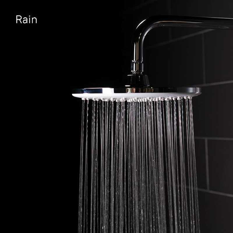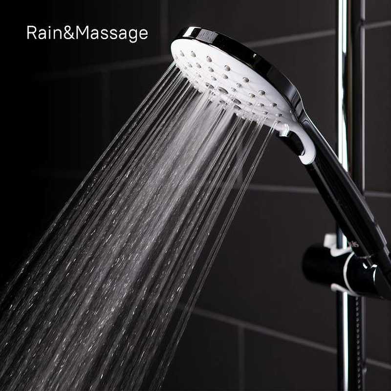 Ручная лейка с 3 режимами, кнопочное переключение режимов, цвет белый с хромом, диаметр 110 мм.