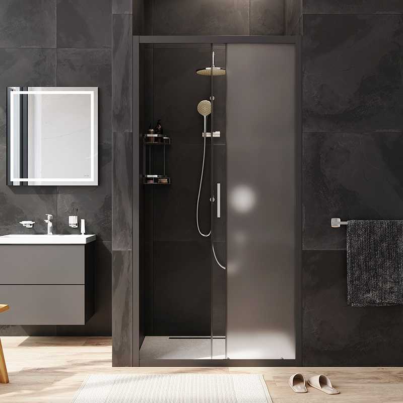 Дверь душевая AM.PM Gem 100x195 стекло прозрачное, матовое, профиль черный (W90G-100-1-195BM)